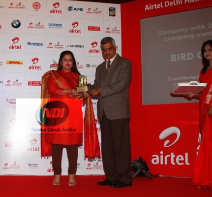 Satyendra Nath Garg, Jt. Commissioner –Delhi Police-Traffic felicitated Corporate Challenge Runner-Up BIRD Group, who raised 13 lakh in support of ‘Sukarya’.